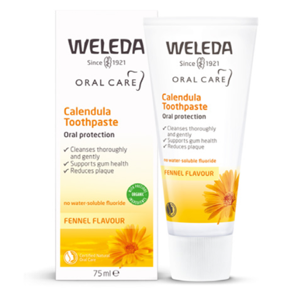 Weleda’s toothpastes are crafted with natural ingredients like ratanhia root, calendula, and sea salt, and are manufactured in Switzerland and Germany.